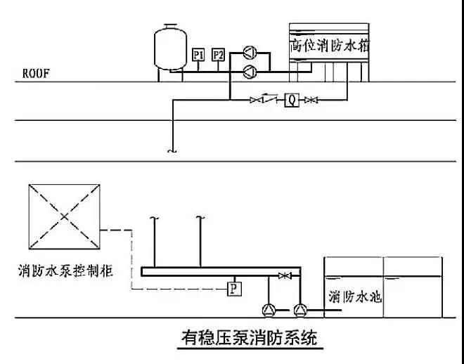 2.消火栓系統中有穩壓泵時(shí),由消防水泵出水干管上設置的壓力開(kāi)關(guān)自動(dòng)啟動(dòng)消防水泵。